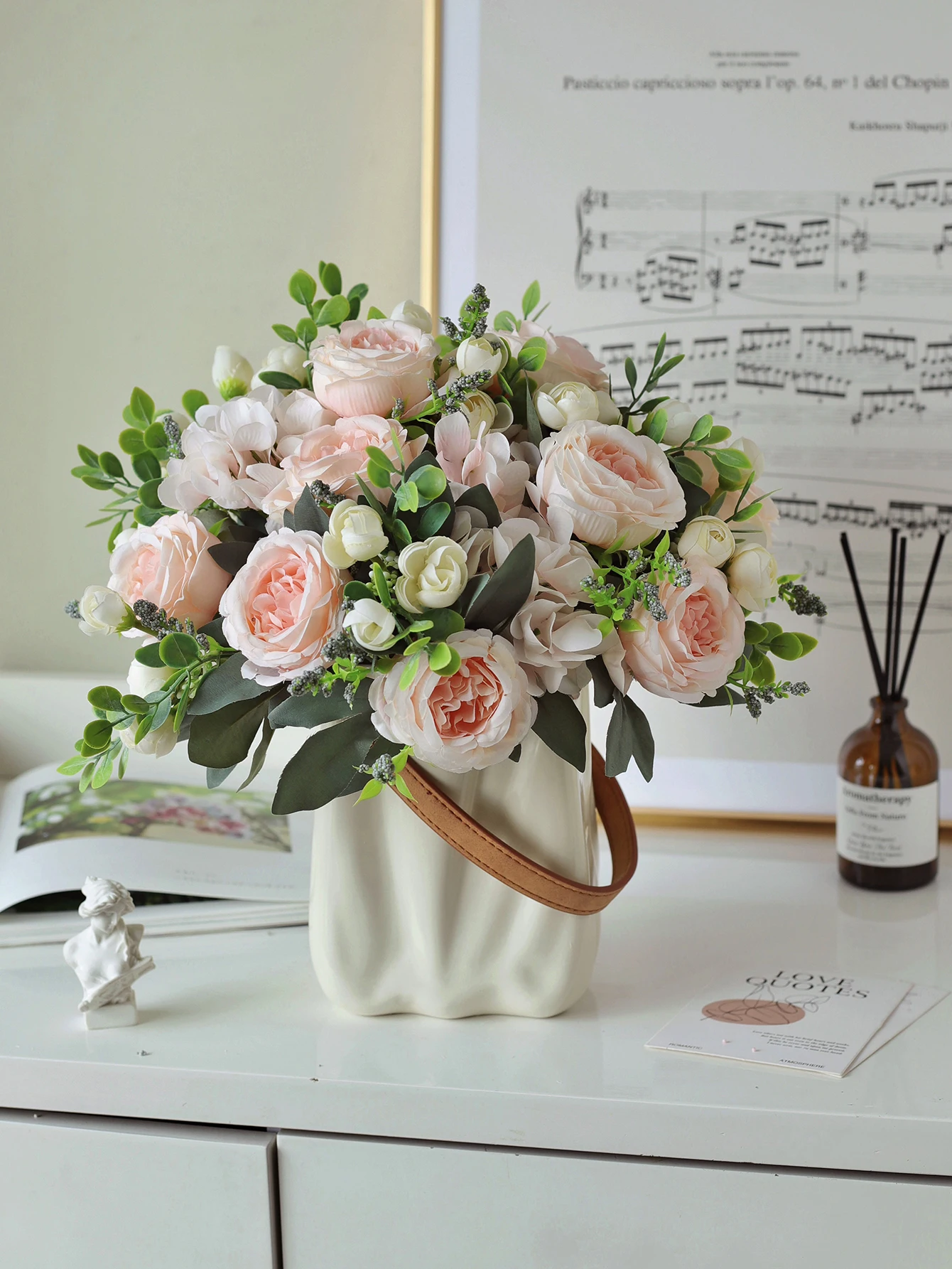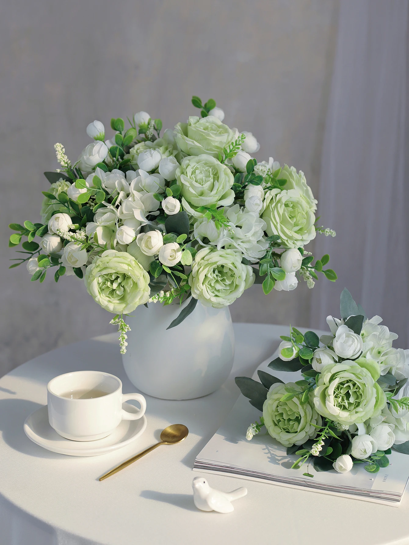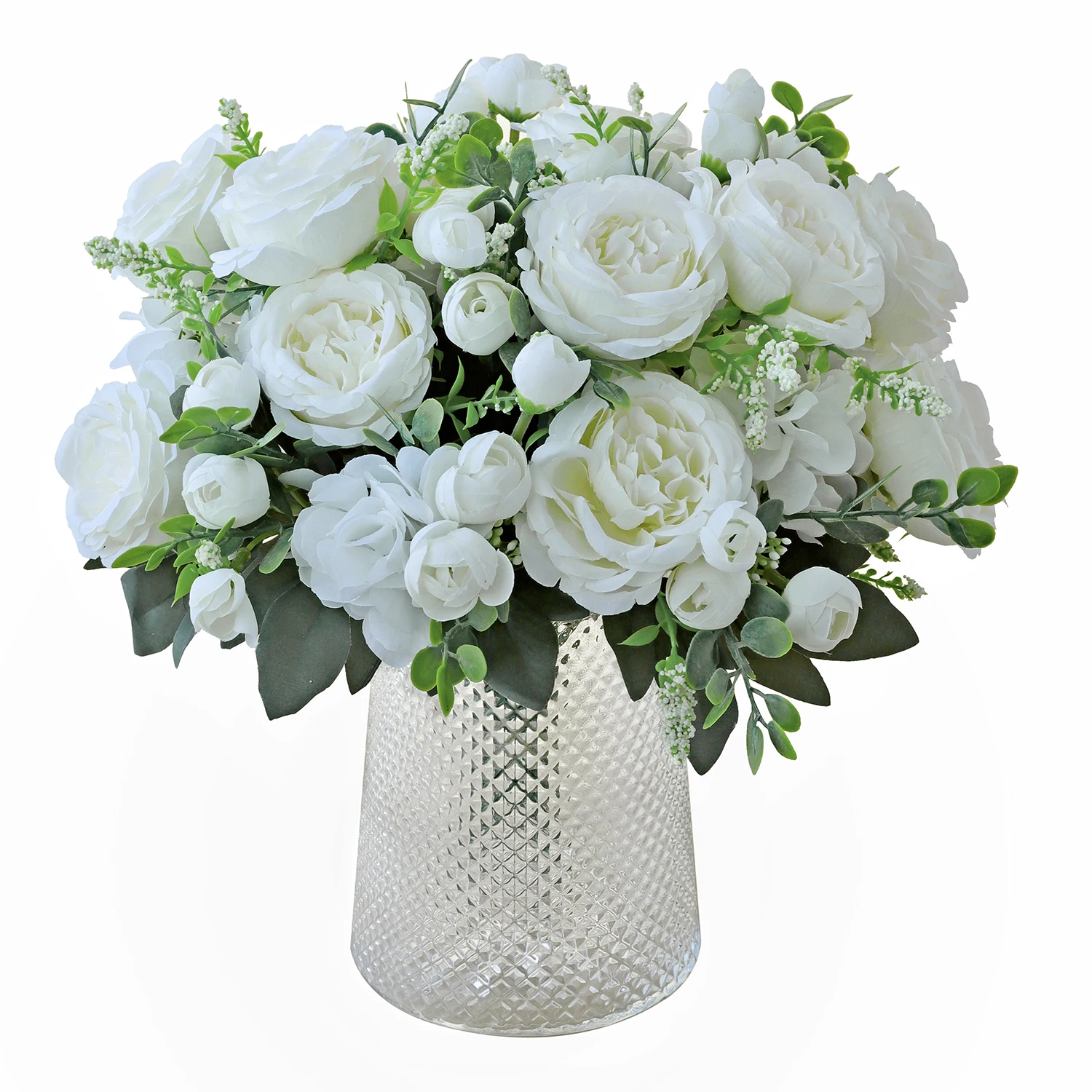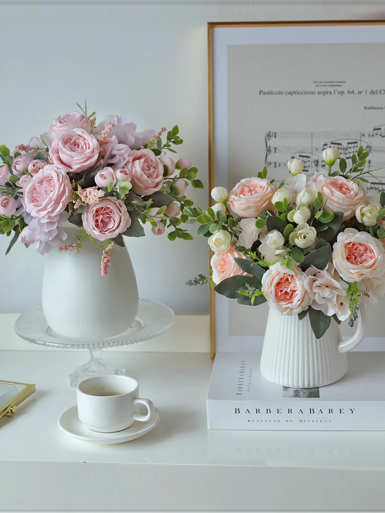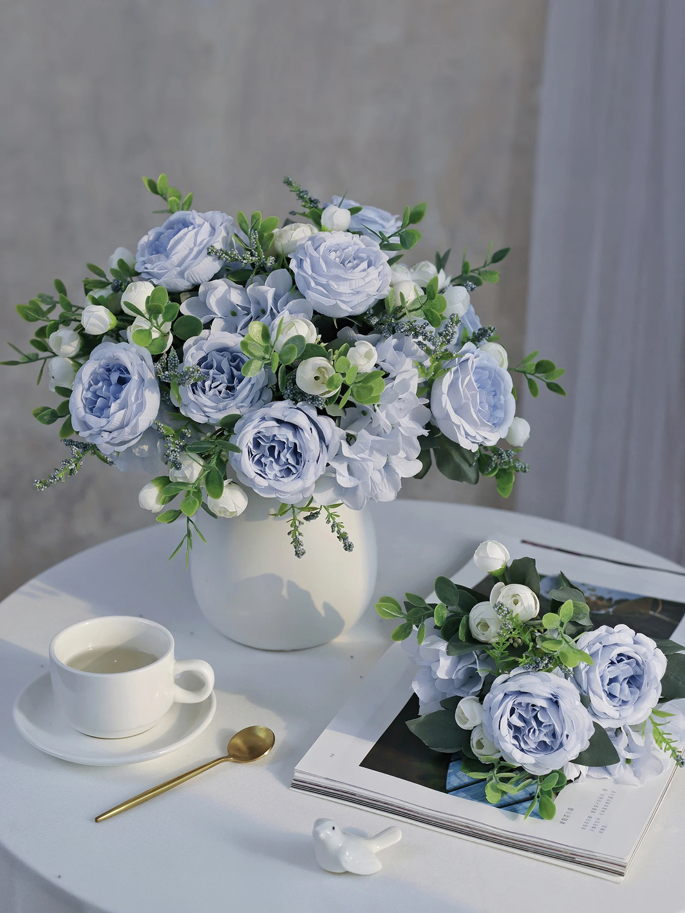 1PC Artificial Flowers Wedding Home Bedroom Decoration Bridal Bouquet Garden Fake Silk Peony Hydrangeas Vase for Board Outdoors