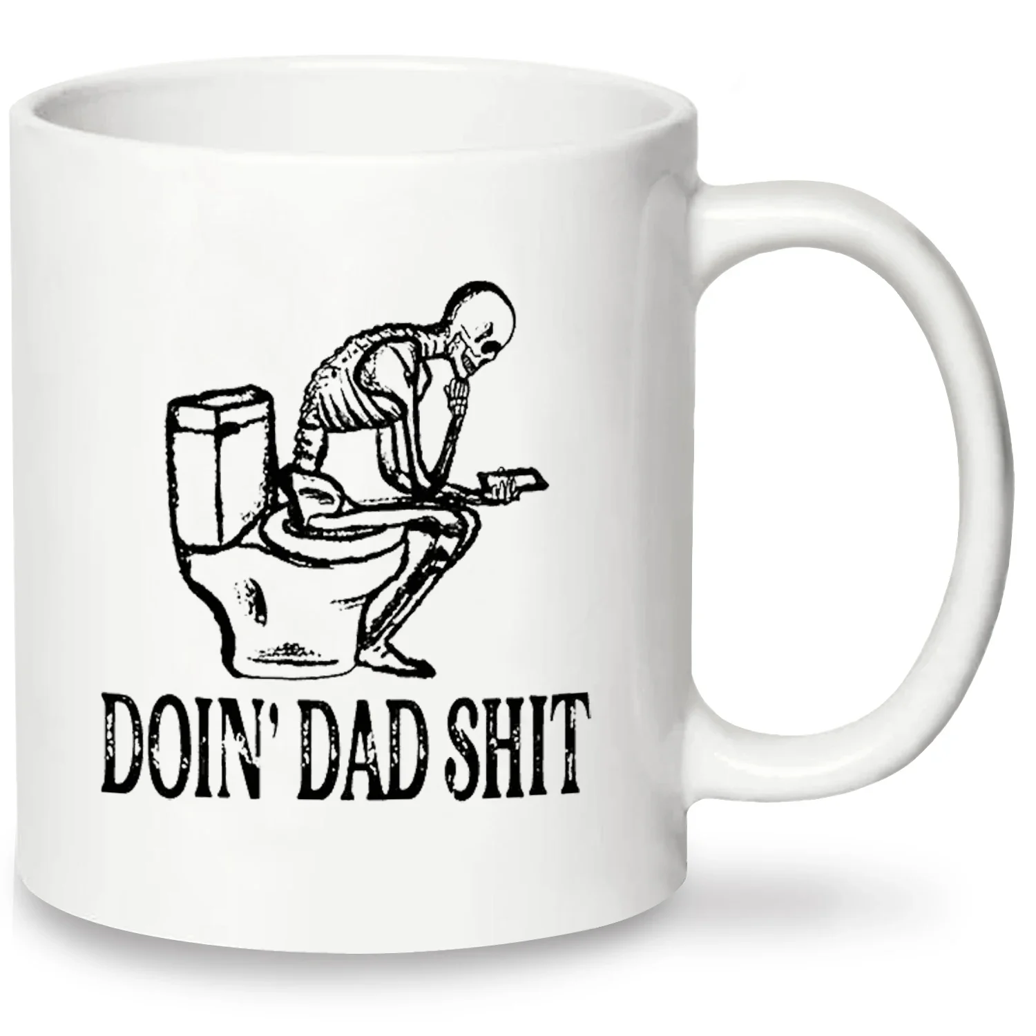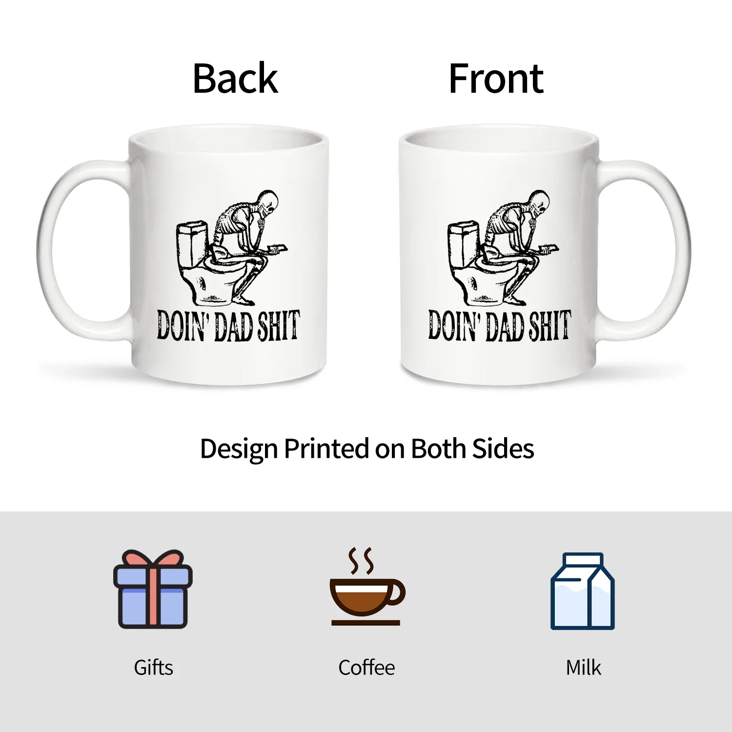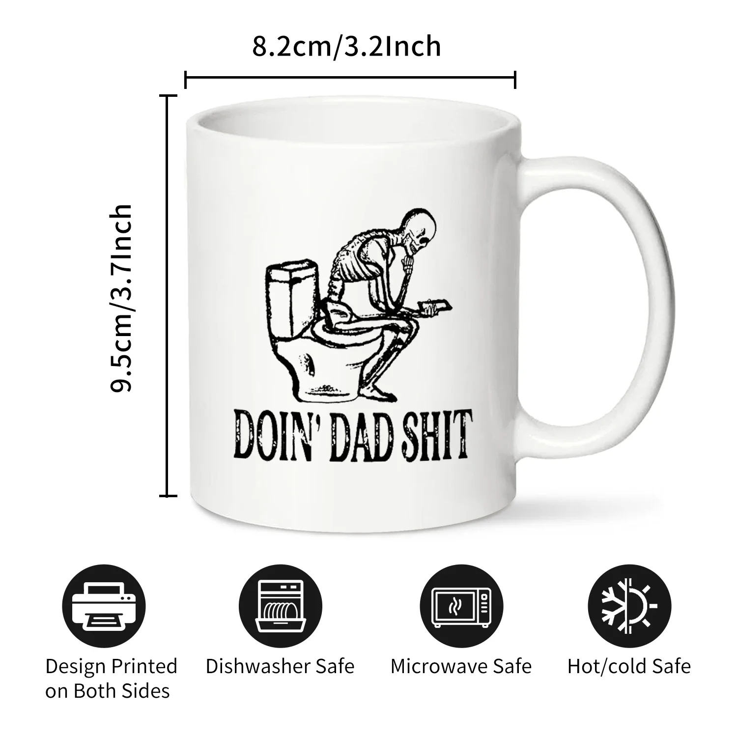 1pc, Dad Shit Funny Coffee Mug - Funny Skeleton Mug - 11oz Ceramic Tea Cup - Humor Mug For Dad Father's Day (White)