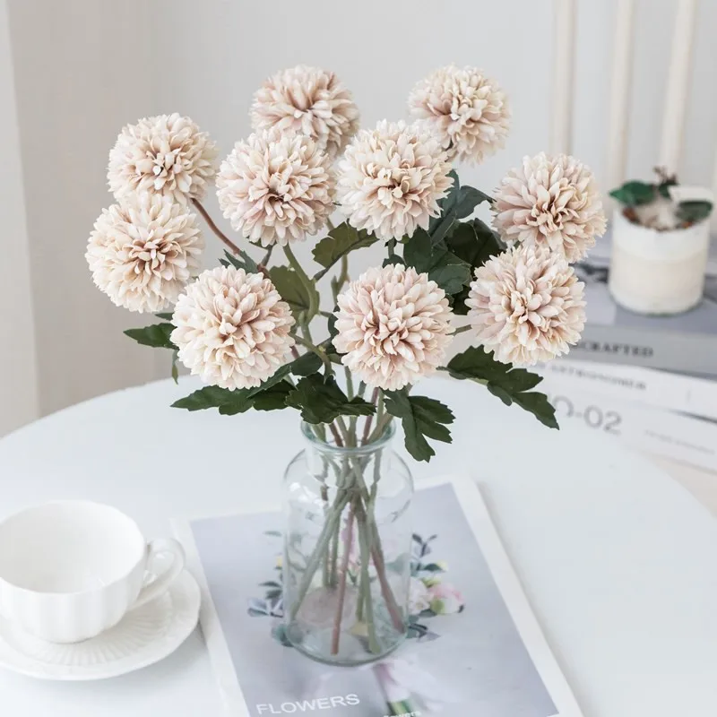Artificial Flowers Silk Ball Chrysanthemum Wedding Bridal Bouquet Home Table Windowsill Festival Room Decor DIY Gift Photo Props