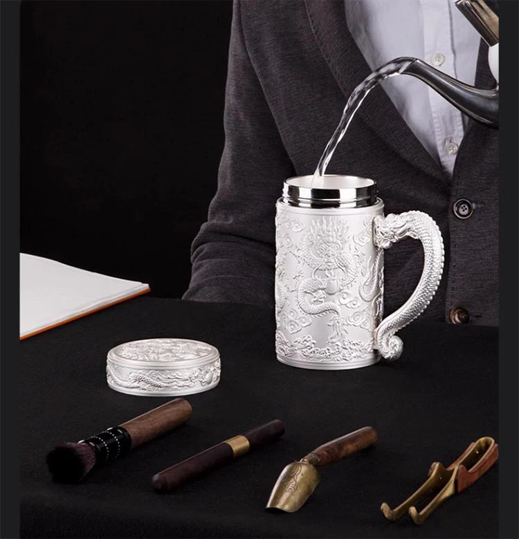 Tea pot insulated cup inner wall pure silver 99.9% 600ml insulated cup stainless steel handle office cup travel coffee cup