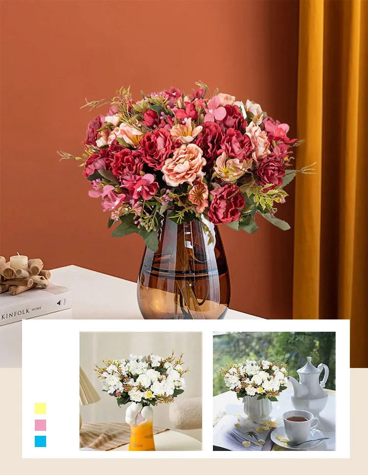 1Pc Artificial Flowers Silk Peony Rose Wedding Bridal Bouquet Festival Home Outdoor Garden Wreath Arch Wall DIY Gift Decorations