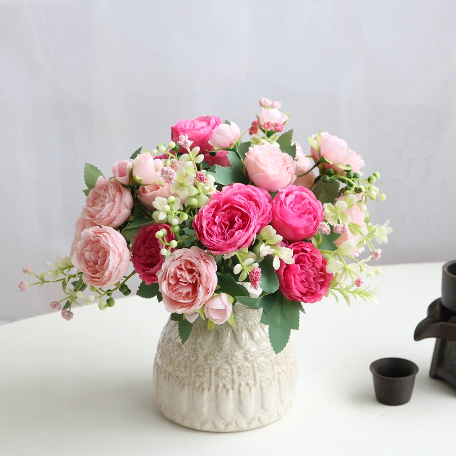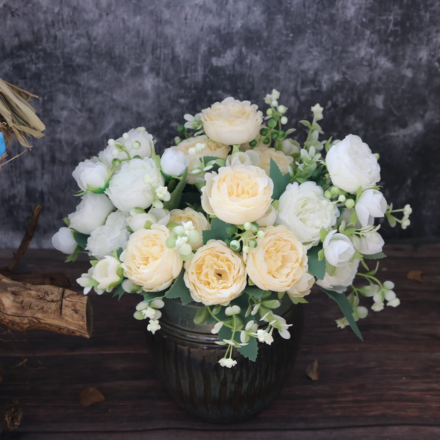 Artificial Rose Flowers 5 Heads White Peony Festival Decor Home Room Vase Wedding Arch Clipping Wreaths Garden Yard Fake Plants